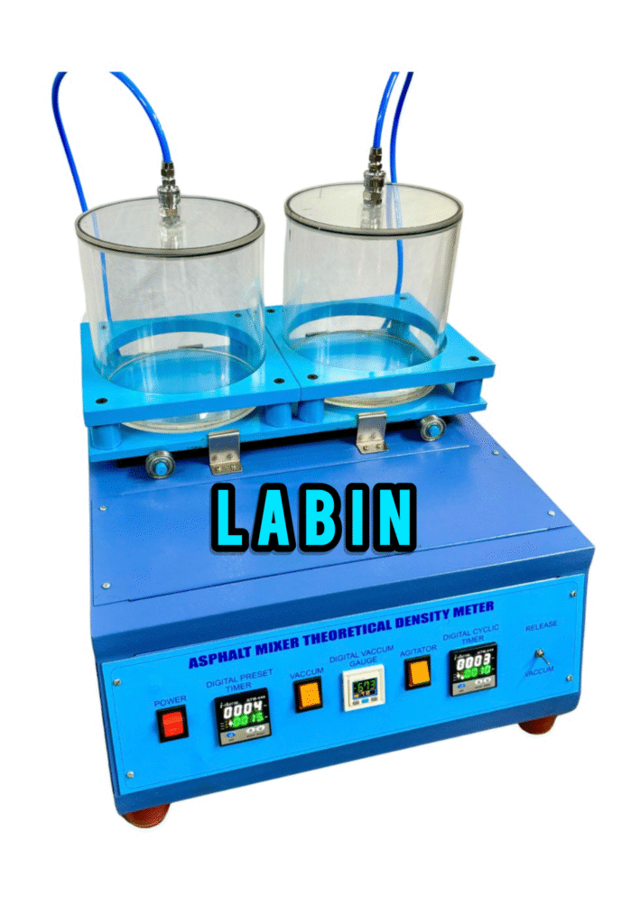 This machine is used for determination of theoretical density of asphalt mixer by vacuum method for applications such as asphalt mixer design, road condition investigation, calculation of porosity and compactness in the road construction quality management.